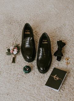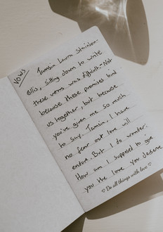 Tamsin and Connor embraced a DIY approach, adding personal touches throughout the day. As the couple prepared for their big moment, I captured their wedding details like Tamsin's perfume, shoes, and jewelry. The day began with a tender moment as Tamsin and Connor exchanged love letters. Reading heartfelt words from one another set a loving tone for the day ahead.
